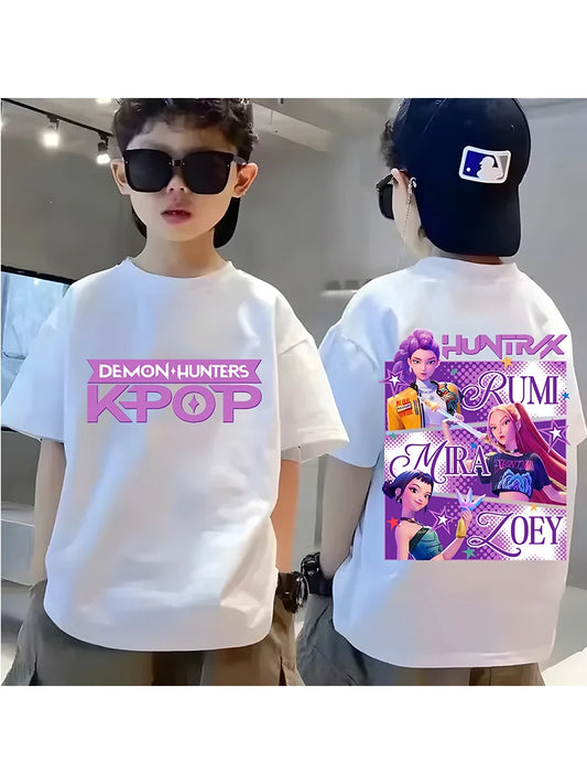 Children's Cotton T-shirt KPop Demon Hunter Printed Fashion Casual Top 2025 Movie Round Neck Cartoon Girl Boy T-shirt