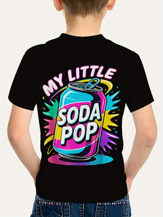 Kids K-pop Style Soda Pop T-Shirt - Boys & Girls Soft Breathable Short Sleeve Tee with My Little Soda Can & Korean Pop Art Logo, Machine Washable Summer Casual Top for, Playdates & Korean Culture Outfits