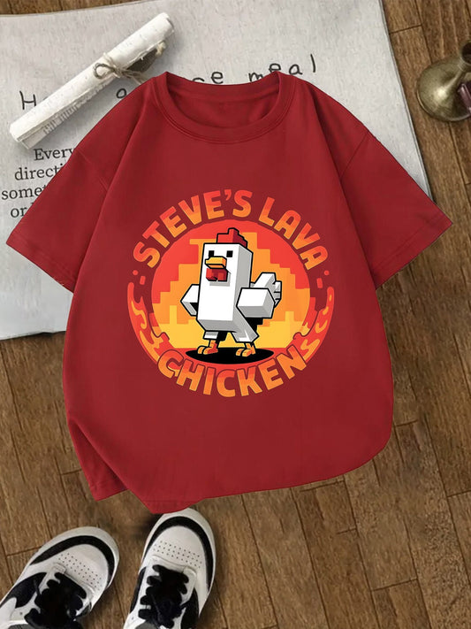 Lava Chicken Boys & Girls Abstract Print Round Neck T-Shirt, Casual Style, Summer Wear, Vibrant Colors, Comfortable Fabric, Playful Design, Casual Attire, |playful Design Shirt|comfortable Fit Shirt, For Outdoor